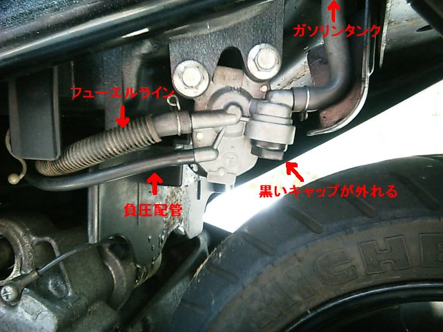 タンクと負圧コックの間にフューエルコックをつけないと、作業のたびにガソリン塗れになるので対策が必要。