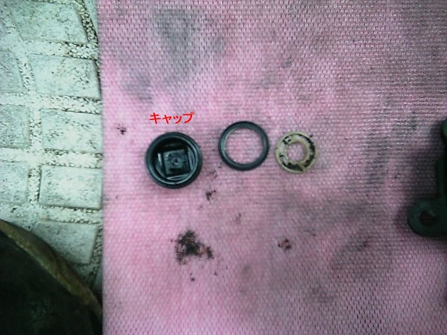 黒いキャップの中にフィルターが入っているので分解して清掃。写真3は外したところを下側から見たもの。