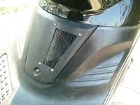 切り取ったシートを開口部に合わせ、ドリルでパンチ孔に併せて穴を開ける。ちなみにこのシートの孔は3mmなので、それに合わせたネジを用意して止める。