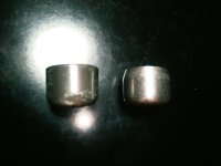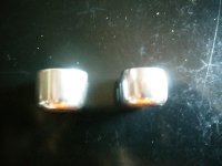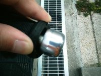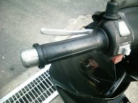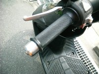 | アクセル側のグリップエンドを加工した。 スロットル外径=グリップ内径<グリップエンド外径だったので、スロットルの自然に戻らなくなった。 元々スロットルは手動で戻すので問題はないのだが、キャブのスプリングのヘタリが早くなるかなと思い、シコシコ手で削ったのだ。 買えば1000円前後の物なのだが、1時間ぐらいかけて金ヤスリでテーパーをつけた。 写真1、2の右がテーパー化したもの。 更に1時間ぐらいかけて全体にペーパーとコンパウンドで磨きをかけてピカピカにした。 写りが悪いが写真1、2の違いが判るだろうか? そして取り付けたのが写真3、4。 グリップも併せて新品同様(ちょっと誇張)になったし、 スロットルもよく動くようになった。 手は死ぬほどダルくなったが……。 |