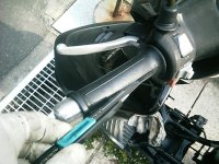 | グリップの交換は難易度が低く簡単。 再利用をしないなら 1)カッターで裂く。 2)古いグリップをカッパぐ。 3)ハンドルにスプレーで水をかける。 4)新しいグリップをグリグリ押し込む。 以上終わり。 再利用する場合は、グリップの内側に接着剤がついている場合があるので、端からCRC等を差し込みながら噴霧、少しずつ抜き取る。 取り付け時には必ず脱脂しておくこと。特にCRCを使用したときはやらないと後でグリップが回るから。 サイズや材質で回ってしまう場合はグリップボンドを使おう。 <注意点> 左はグリップの下はハンドル(金属)だからそれほど気にしなくてもいいが、右側は下がスロットル(樹脂)なので注意して切ること。 |